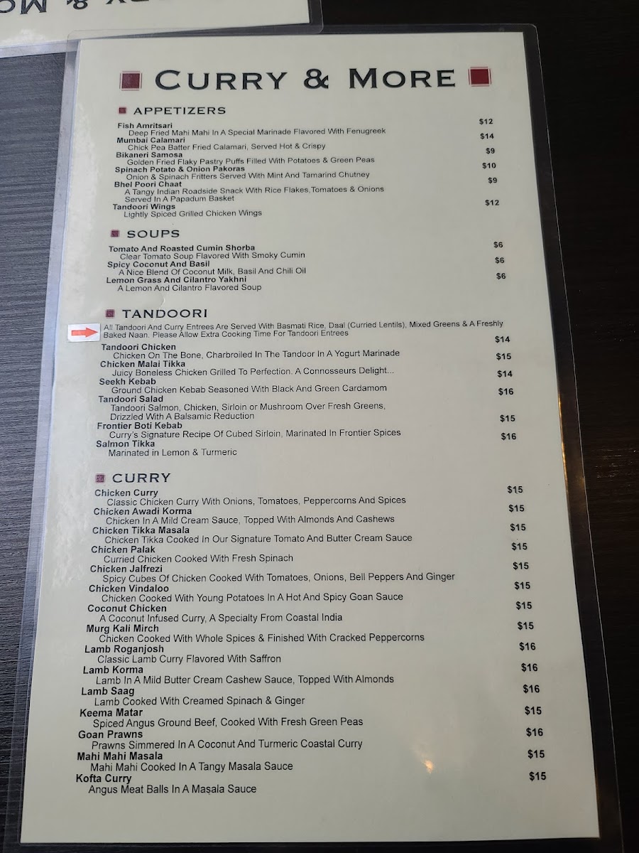 Currys signature recipe of cubed sirlion marinated with frontier spices. Served with basmati rice, jeera aloo (semi-dry curried potatoes), dual (curried lentils), mixed greens and a freshly baked naan.